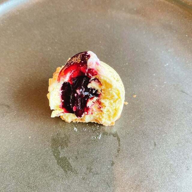 ブルーベリージャムと中のケーキがめちゃくちゃ合う。