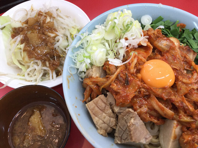 混ぜろ混ぜろの大合唱。まぜそばの醍醐味のひとつですね。野郎ラーメンにルーツを持つコジマルさんの宮野木店の話。メニューのバリエーションが豊富で、まぜそば系も充実している。まぜそばではなく台湾まぜそばを注文。二郎系の台湾まぜそばに仕上がってました。改めてではありますが、まぜそばの混ぜる醍醐味をゴリゴリの太麺が思い出させてくれました。その豪快さは混ぜるに留まらず、太麺がトッピングを荒々しく巻き込む勢いすら感じました。ピリ辛の台湾ミンチ(ひき肉)を軽く小突いてみたら気管に入って誤嚥してしまう。こんなところにもこの一杯の攻撃力の高さを伺える。カットされた二郎系の豚がゴロゴロと転がっている。台湾×二郎の同居こそコジマルにおける台湾まぜそばの魅力。コストパフォーマンスが最高で、卵黄にネギ×ニラ×海苔×魚粉と台湾トッピングのオールスター勢揃い。混ぜろの大合唱と共に、太麺がトッピングを問答無用に巻き込むわけです。ヤサイとアブラをコールしたら別皿でした。もう大忙しです。味変は卓調のラー油を少々。なんと追い飯無料です。大忙しでしょ?追い飯無料は多くないのですが、残ったヤサイやアブラと合わせて、丼底に残った台湾ミンチやニラを救済するのであります。イベント盛りだくさんで楽しかったです。コジマルさんは3年ぶりの訪問でした。う~ん、もっと頻繁に足を運ぶべきと猛省しながら帰りました。