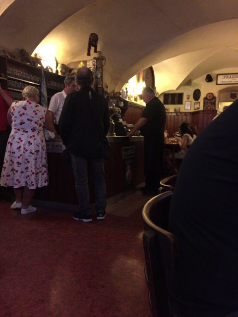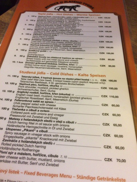 プラハでも1、2を争うほど有名な店で、旧市街の繁華街ど真ん中にあるピブニツェ。店名は「金の虎」を意味している。