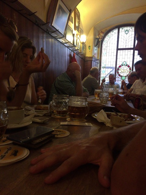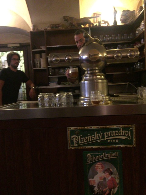 この店のビールも1種類、プルゼニュで醸造された生のプラズドロイと言われる白ビールだが、フルーティでこれもスイスイといくらでも飲めそうなビールだ。