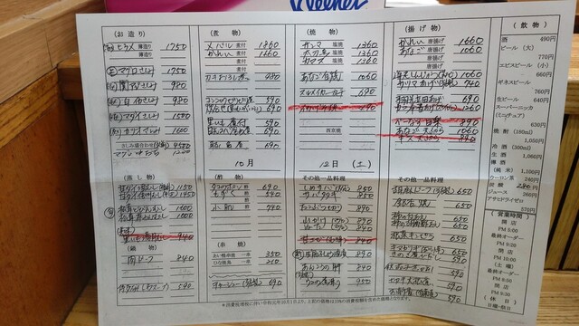この日、九月は白露の頃、まだ暑い季節だが、季節の移り変わりを金田で味わおうと1年ぶりの再訪は、みなとみらいランから横浜のスポーツ店訪問のあと地元に戻り、午後6時半の入店。店内は5割程度の客入りと空いている。