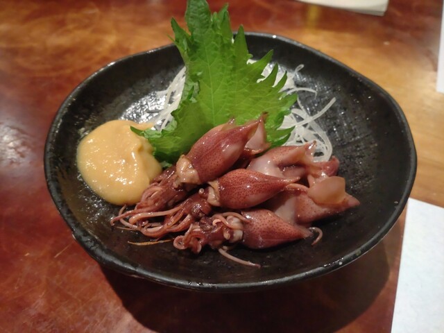 同行者によると、店が開く午後5時に来店しても入れないことがあるくらい人気店とのことで、今回は予約しての訪問。 釣り好きの同行者によって釣果が事前に持ち込まれており、当日給されたものの一部はそれに拠るものである。
