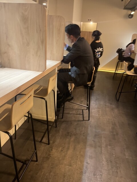 店内は白と木を基調とした清潔感ある落ち着いた雰囲気で、席と席の間に仕切りがあってひとりでも入りやすい造り。