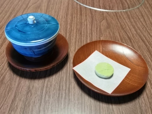 干菓子とお茶で、一服。庭を見たりしながら、くつろぐ。