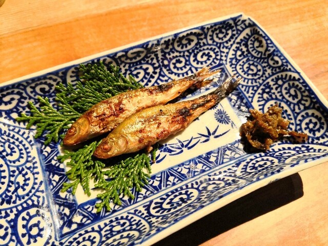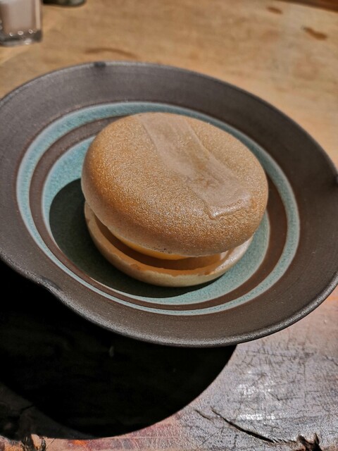 瀬田川のほとりにある炭火割烹蔓ききょうにて滋賀のジビエを堪能2021年04月02日唐橋前にて降り、瀬田の唐橋を渡って瀬田川沿いにある蔓ききょうにて会食。入口はひっそりと。二階に案内されると、木のテーブルが並んでいた。食事に合うのは、最初のほうは「焼酎」というお勧めもあって、宮崎の日南娘(ひなむすめ)をいただいた。大原野の野菜の炊き合わせ。バイ貝の肝も、アオリイカも、野菜もどれも美味しい。焼酎にも合う。ホンモロコ、小鮎など魚も美味しい。焼かれたパンに肝ペーストを塗って食べると、これまた美味しい。焼き野菜。どれも野菜の味が濃く感じられる。最後のジビエは、塩、バジルペースト、粒マスタードで。鹿。柔らかくて食べやすい。熊。ツキノワグマだということだが、とても噛み応えがある。味自体はあっさりしている気がした。鴨。散弾銃で撃ったものらしく小さな弾が入っていた。とてもワイルドな味がする。骨の周りの肉まで食べられるのが嬉しい。〆は御飯。大根おろしをかけながら食べると、あっさりして、とても美味しい。酒粕のアイスの最中。さっぱりしていて甘さをそれほど感じない。滋賀の北側の山でとってきたジビエらしいが、北のほうが美味しいらしい。子供が食べやすいようなメニューもあるので、また家族で来たいな~