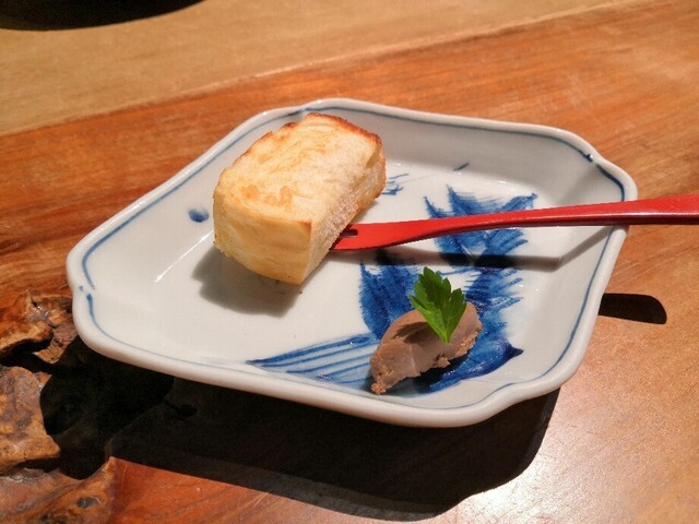 焼かれたパンに肝ペーストを塗って食べると、これまた美味しい。