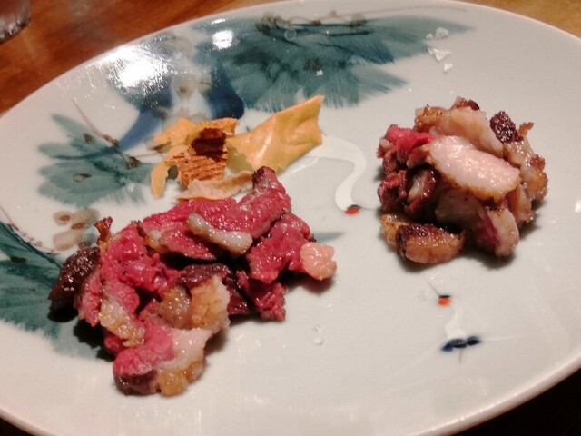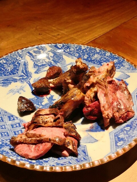 鴨。散弾銃で撃ったものらしく小さな弾が入っていた。とてもワイルドな味がする。骨の周りの肉まで食べられるのが嬉しい。
