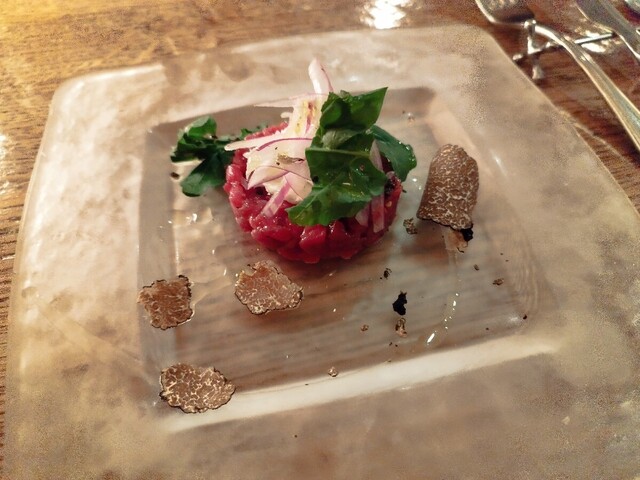 ユッケ風。トリュフも添えられていて、ワインを飲もうということになって、店長に選んでもらった。