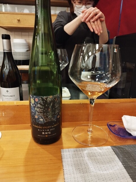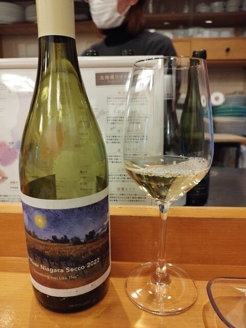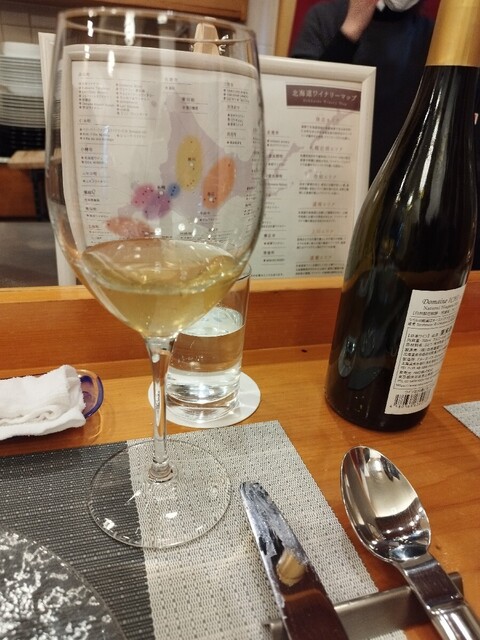 イル・ネージュ札幌にて北海道ワインを中心にイタリアン&フレンチで楽しむ☆2023年03月01日武蔵関駅から大泉学園駅のほうに向かって15分程度歩いたところにあるイル・ネージュ札幌にて北海道ワインを中心にイタリアン&フレンチをいただいた。フルコースと呼ばれるものがあって、これがとても美味しかった。スープは白いカボチャをつかったものらしいのだけれど、とても素朴で優しい味で美味しいし、パイの中には、さまざまな魚介類が入っている。ソースも濃厚。パスタも美味しいし、鴨もおいしい。チョコムースとイチゴもいい感じ。お店は、6席のカウンター席だけだったが、手前にはワインを販売する酒店があって、気に入ったのは買えるのだとか。のれんの北海道の図柄がカワイイ。和風のカウンター&店内の内装でありながら、ナイフとフォークとスプーンが並べられており、しっかりとしたカトラリーが美味しさを引き立てていると感じる。北海道のワインのスタートは、ナイアガラ。独特の風味がグラスの中から立ち上がる。どれも美味しいのだけれど、店長おすすめのこのワインは、伸び盛りの若手が作られているらしく、とても美味しかった。「KURISAWABRAN」は、万華鏡ワインと言われているらしく、タイミングとともに、さまざまな味わいを見せてくれる。こんなワインがあるんだ!ってくらい感動。万華鏡ワインを造る人 第3回「クリサワブラン」ナカザワヴィンヤード中澤一行ちょっと変わったエチケットに魅かれて飲んでみたが、まあ普通かな。印象に残っていない。長野の小布施のワイン。これはとても美味しかった。日本のワインだけれど、世界でも戦えるくらいの品質だと感じる。ドメイヌソガ サンシミ2014 プティヴェルド。なかなか貴重かも。同じブドウ品種を使っているけれど、全然違う味のワインがあるということで、飲み比べさせてもらったけれど、残酷なまでに違いがある。何年寝かせても、小布施のワインには追い付けないと感じさせる。これは残酷。作り手の意図が現れているだけかもしれないけれど、どうあがいてもその先に行けない壁を感じる。(人も同じだよな...と感じてしまった)帰りは、バスで大泉学園駅へ。ごちそうさまでした。ホスピタリティにも満ち溢れていて、味もよく、ワインもいろいろと飲むことができて、本当にいいお店。流行りすぎて予約がとれなくなったら困るけど、他にお客さんもおらず、廃れてしまっても残念なので、敢えて紹介したいお店。また行きたいな。