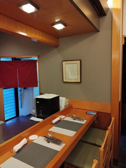 和風のカウンター&店内の内装でありながら、ナイフとフォークとスプーンが並べられており、しっかりとしたカトラリーが美味しさを引き立てていると感じる。