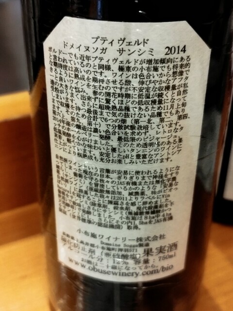 ドメイヌソガ サンシミ2014 プティヴェルド。なかなか貴重かも。