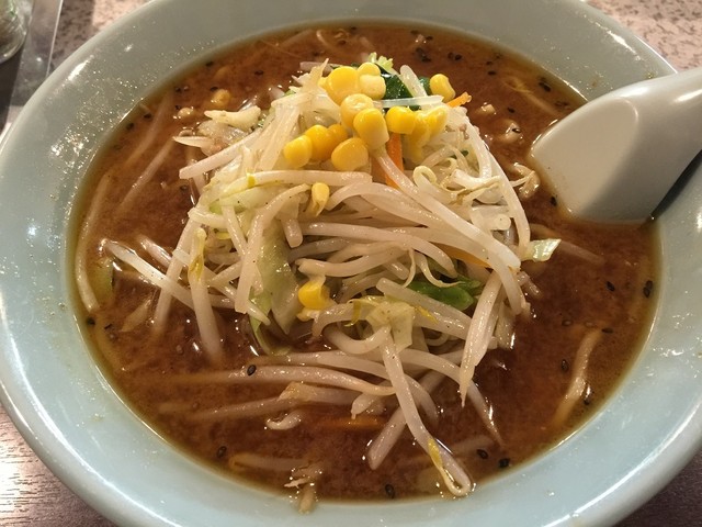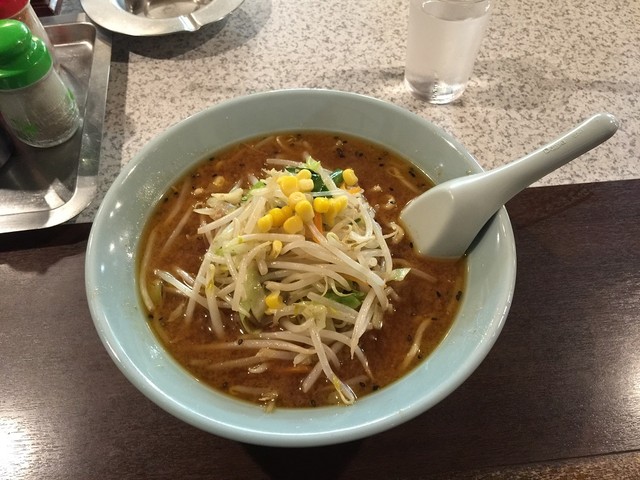 お決まりの味噌ラーメン、肉餃子を注文。