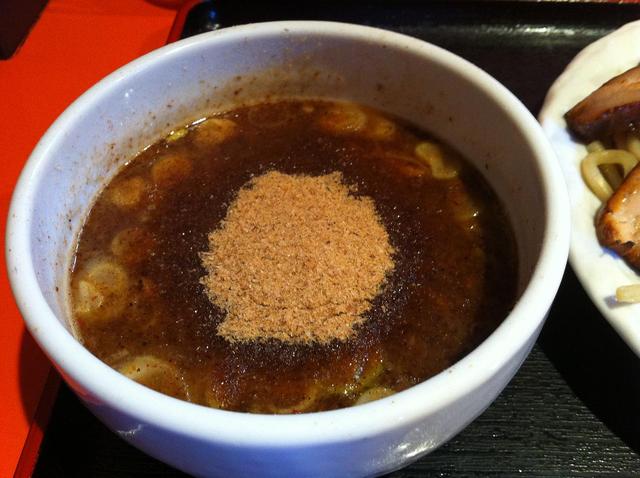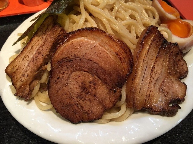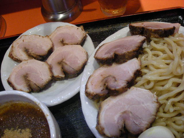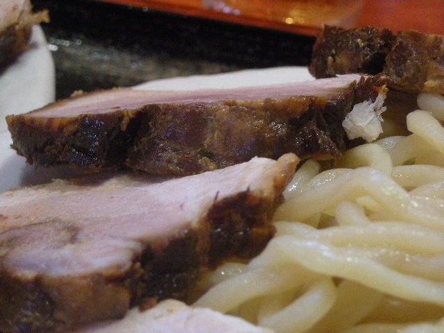 麺も玉子もなくなり、チャーシュー残りの2枚をつけ汁の中に入れて、