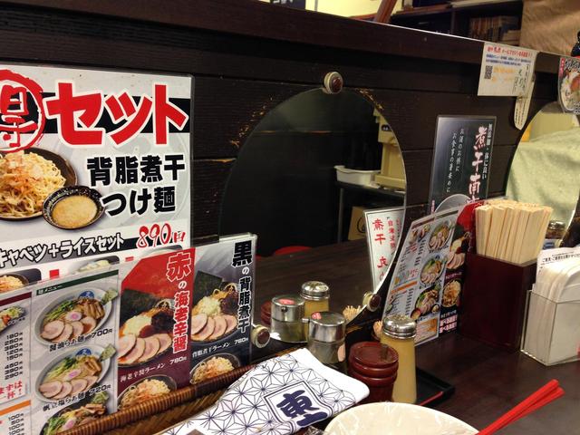 背脂の量がノーコール(普通)、メガ(中油)、ギタ(大油)、テラ(鬼油)と選べ、