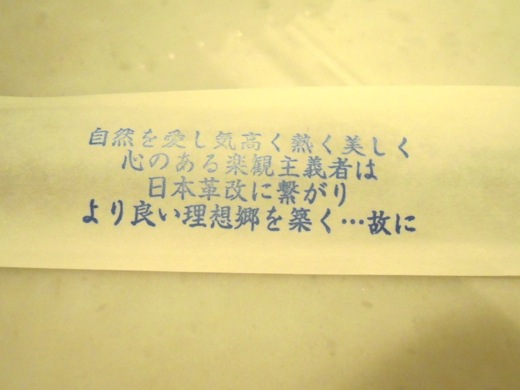箸袋の裏に、店主の思想が