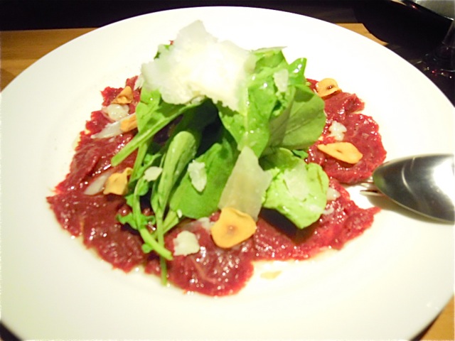 遅い時間で空腹ではなかったので、メインはやめ、オードブルを注文、赤なのでお肉をと思ったら