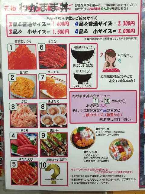 うにいくら丼を食べるのなら、別のお店でもよかったのですが、昨夜もみよ福さんで軍艦巻きながらうにもいくらも食べてるし、こちらが高評価な要因のひとつは4種類のネタが選べる「わがまま丼」にあるとみて決めました。