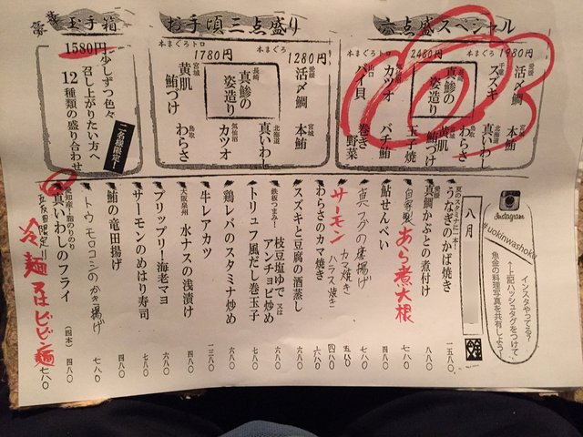 鮮魚類は日替わりメニューになっていて、二名様限定の「玉手箱」という12種類盛り合わせを注文しましたが、少しずつ色々食べられて大満足です!