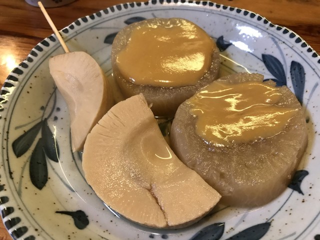 少し前までは地元の常連客が三々五々集まるこじんまりとしたおでん居酒屋さんだったのが、北陸新幹線効果なのか、一気に観光客で溢れ返ってしまい、色々と追い付いてない感がありますが、味はいいし雰囲気も良いので、今のままで頑張って欲しいお店ですね。