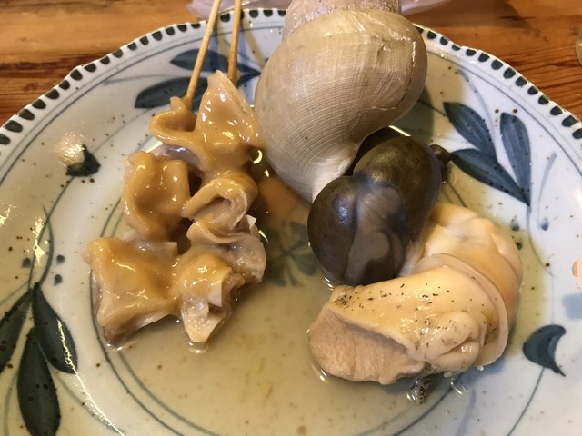 順番に出すので少し時間がかかるとのことで、その間につまむのに、ばい貝、すじ、大根、たけのこを注文。