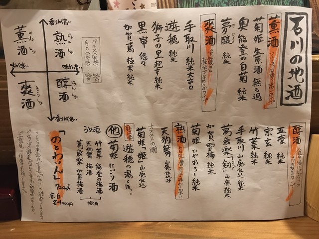石川の地酒リストを見ますと、なかなかの品揃えです。