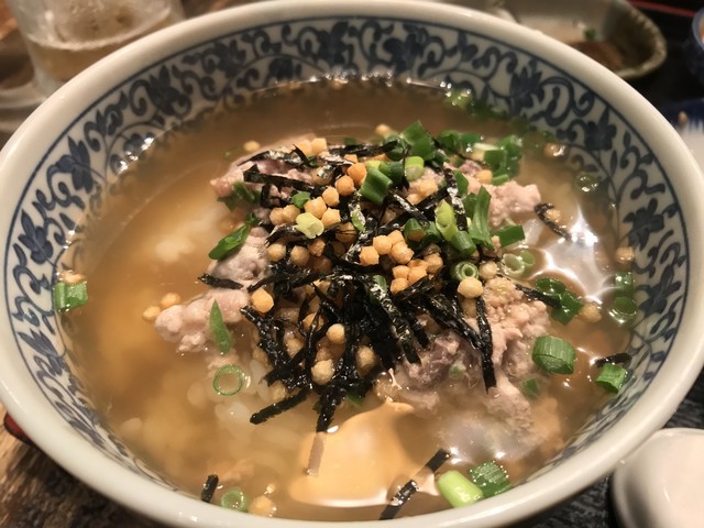 ご飯に鰹節、ネギ、梅干しで、読んで字のごとくスープにそのまま投入。