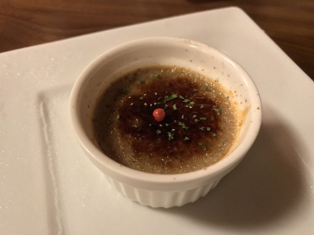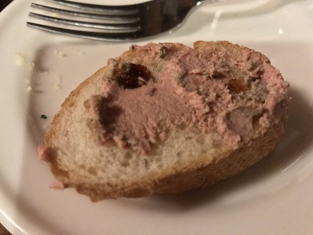 焼きプリンかと思う外観のレバーペーストをバケットに塗って頂く。