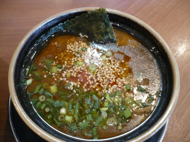 麺は小盛で十分、スープ割をしても脂がキツイ。