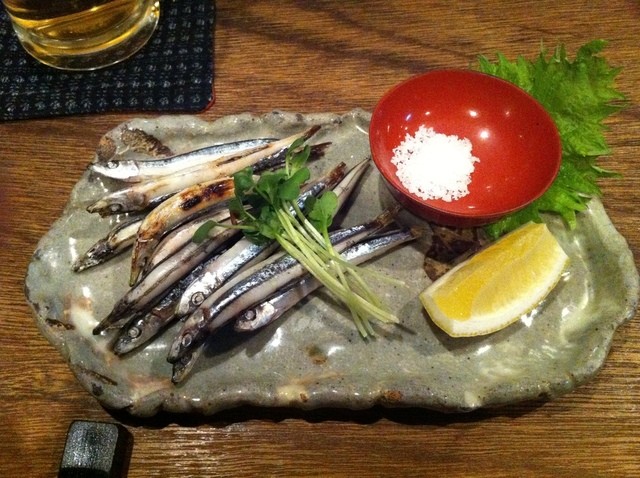 気にはしつつも、おつまみにキビナゴの塩焼と塩豚を注文。 鹿児島の地産地消です。