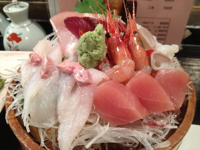 刺身の盛り合わせは小桶で。