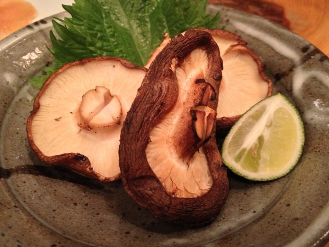 そう言えば、お通しのキャベツと刺身のツマしか野菜を食べてないので、原木しいたけを追加で。