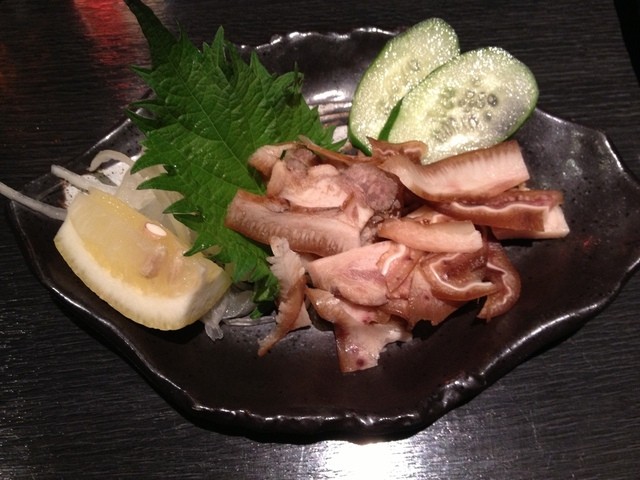 つきだしはだし枝豆で、ピリ辛の和風だしがよくしゅんでて、ビールのおつまみに最適です。