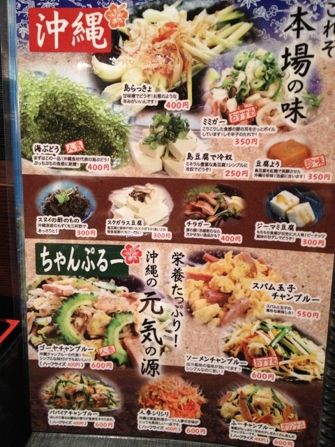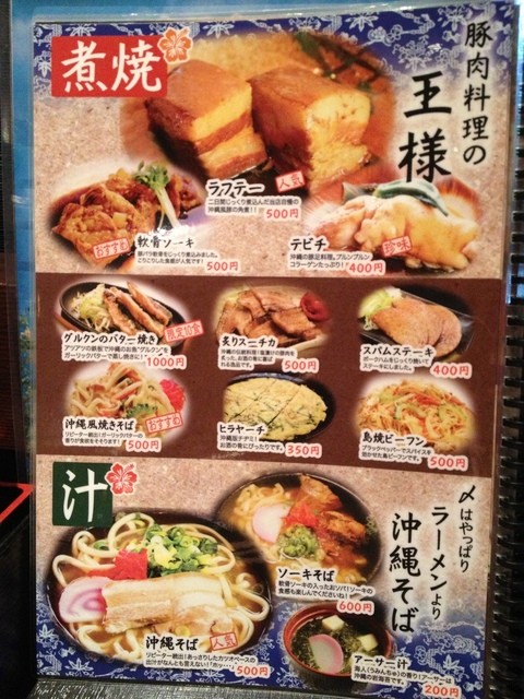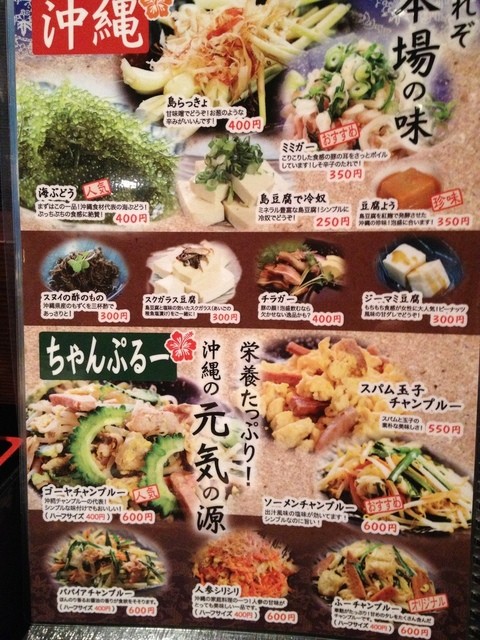 ラフティーや各種ちゃんぷるーなど沖縄の味覚満載で、しかも価格設定が全体的に抑えめ。