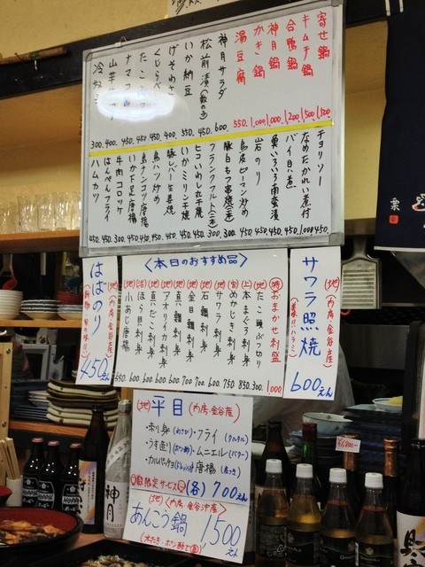 お酒のお代わりを注文しながら、近くに住んでいるけど、いつも満席で入れなかったなんて話をすると、良く飲まれるなら1升瓶が4500円で2ヶ月キープできるのでお得だよと、酒飲みの心をくすぐる。。。