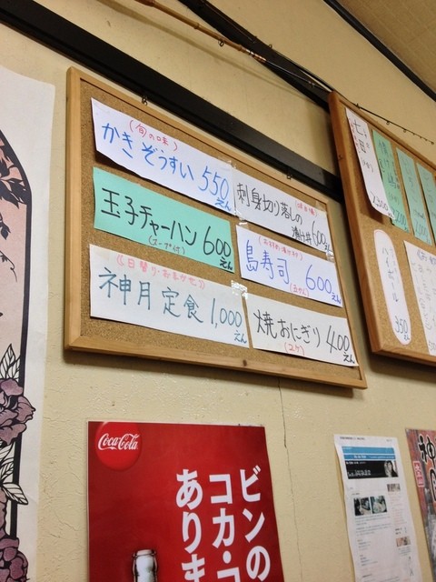 メニューに(釣)マークがついているものはご主人が釣って来たものらしいですが、残念ながら週中のこの日はありませんでした。