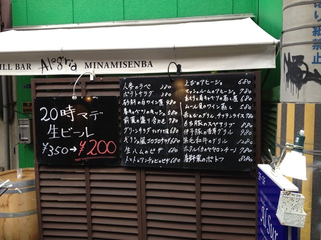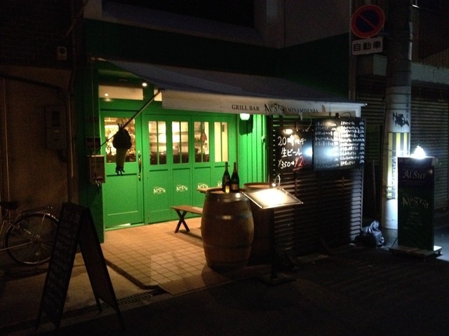 緑色が映える雰囲気の良さそうなグリルバル。 なんと20時まで生ビール200円だそうですよ。