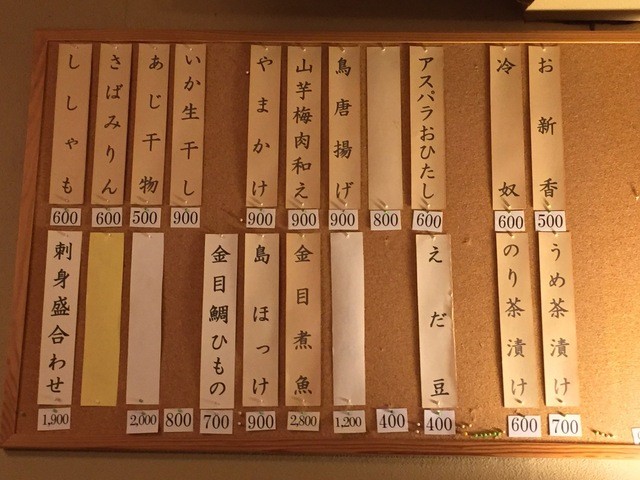 メニューを見ますと定食類に力を入れらているようで、一品ものは仕入れに合わせてボードメニューに時価が掲示されています(金額は明示されてますのでご安心を)。