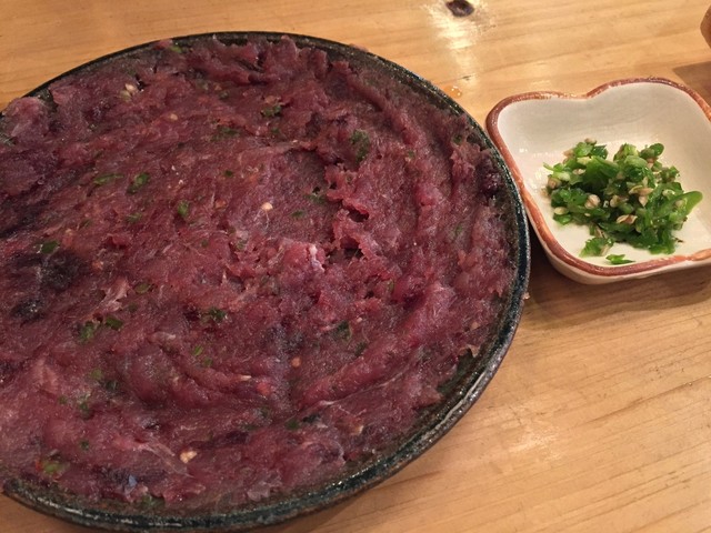 追加で注文したさばのなめろうはバーナーで炙られて玉子の黄身をつけて食べるあたりが鶏つくねのようながら、生とは違った旨さ。