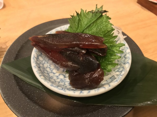 うずわの塩辛でチビチビと飲み、最後は牛モツ煮込みと半ライスで〆。