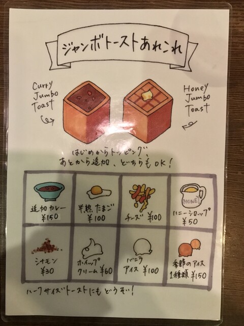 メニューを見て、カツカレージャンボトーストに惹かれましたが、さすがにこれはやりすぎ・・・