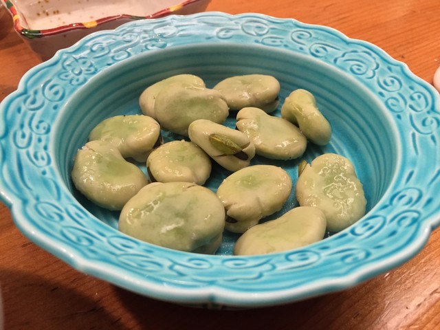とりあえずのつまみで、しったか貝塩ゆでと空豆の塩ゆでも。