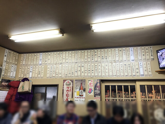 壁にはびっしりとお品書きが貼ってあり、どれも安くて200円~300円を中心に、高いものでも500円まで、しかも酒飲みの心をくすぐる一品ばかり。