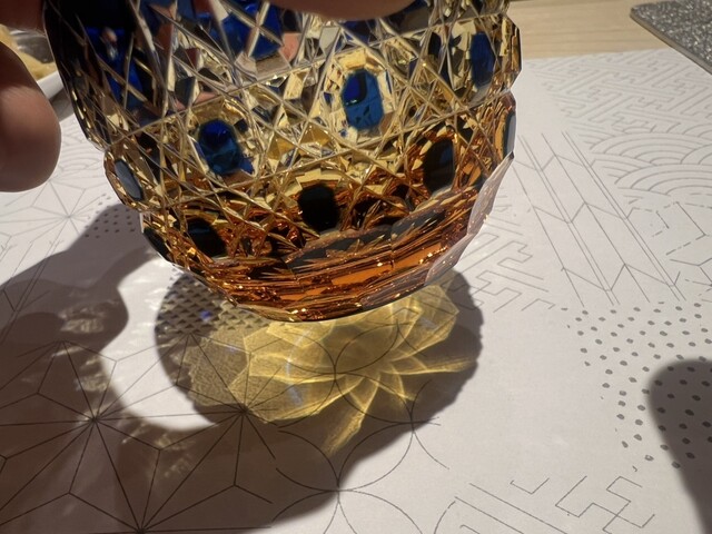 三重県の「作」と共に。色鮮やかで綺麗な江戸切子でいただきました。