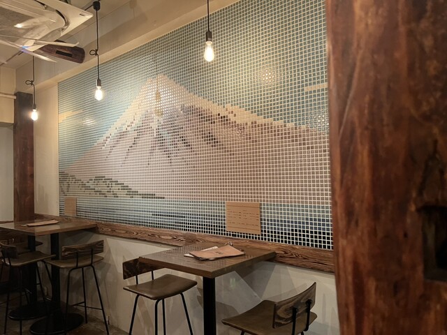 壁にあるタイル貼りの“富士山”のアートがとってもカッコいいです!
