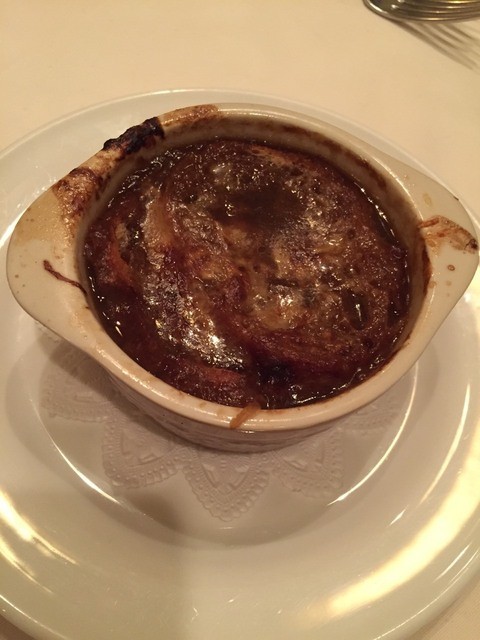 前菜のオニオングラタンスープはおくさまのおっしゃる通り…熱い!!!