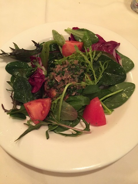 白子の前菜もハーブのベビーリーフの酸味のあるドレッシングと食べると