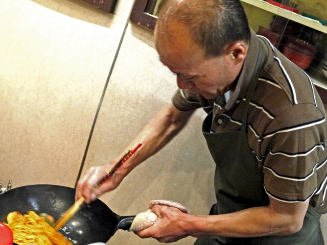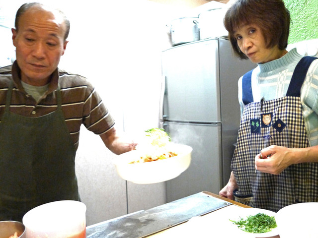 厨房に立つのは大将.フロアを奥様の2人で営んでいる.