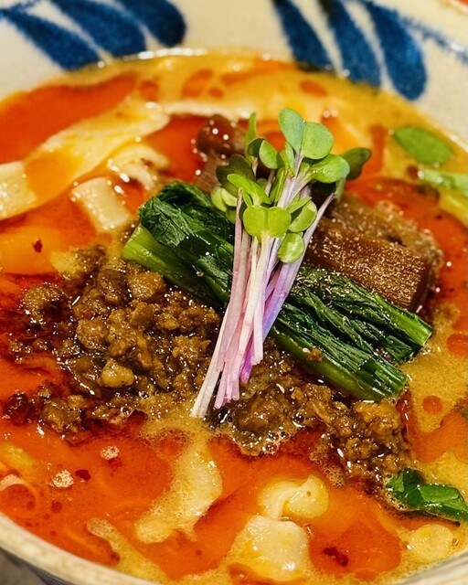 動物系の旨味の下層に,羅臼昆布や煮干し系のだしが静かに流れ,その上を胡麻のコクと辣油の辛味が滑っていく.