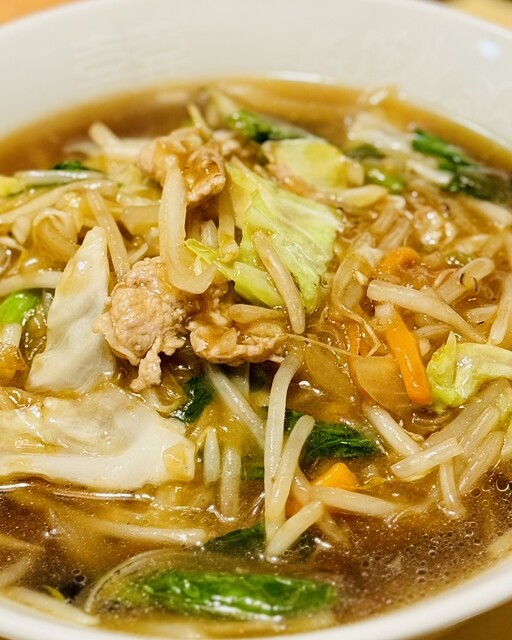 炒めのエッジがスープに移り,あんのとろみが麺の表面張力と共鳴していた.