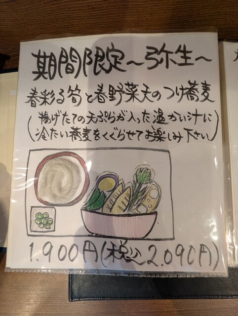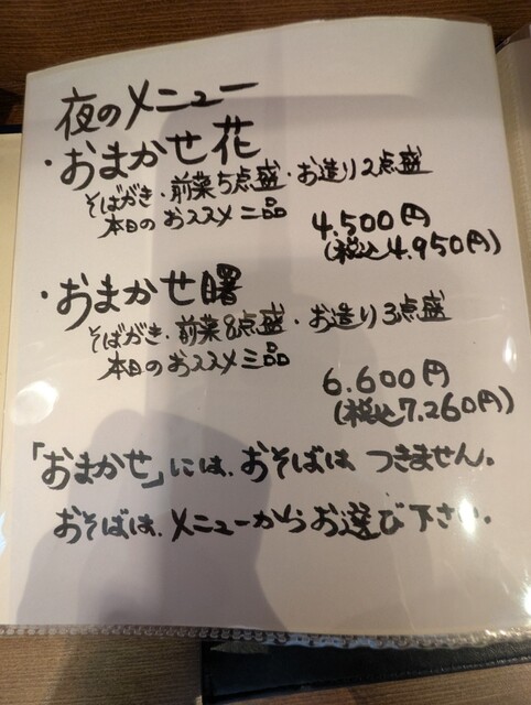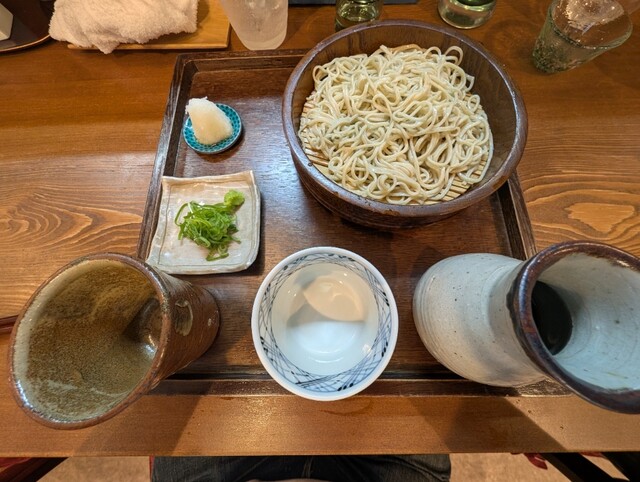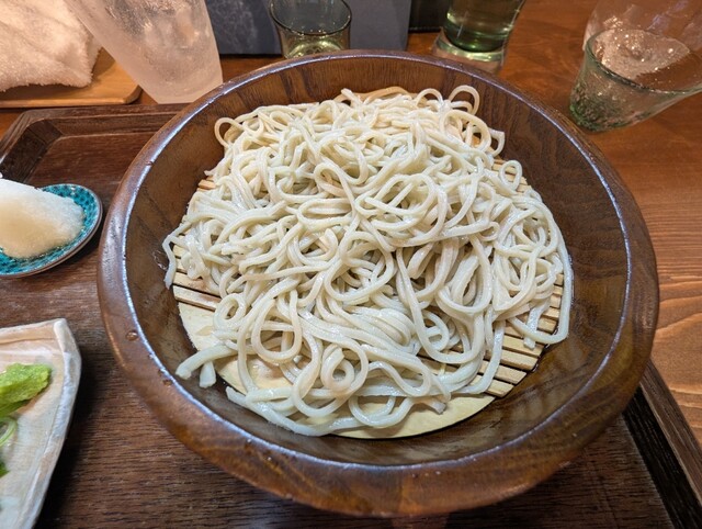 端正な蕎麦で、水切れもよく、蕎麦の香りが充分にある。つゆは塩辛すぎもせず薄くもなくの好バランスだし、大根おろし、刻みねぎ、わさびまでちゃんとおいしい。そば湯もとても良かった。